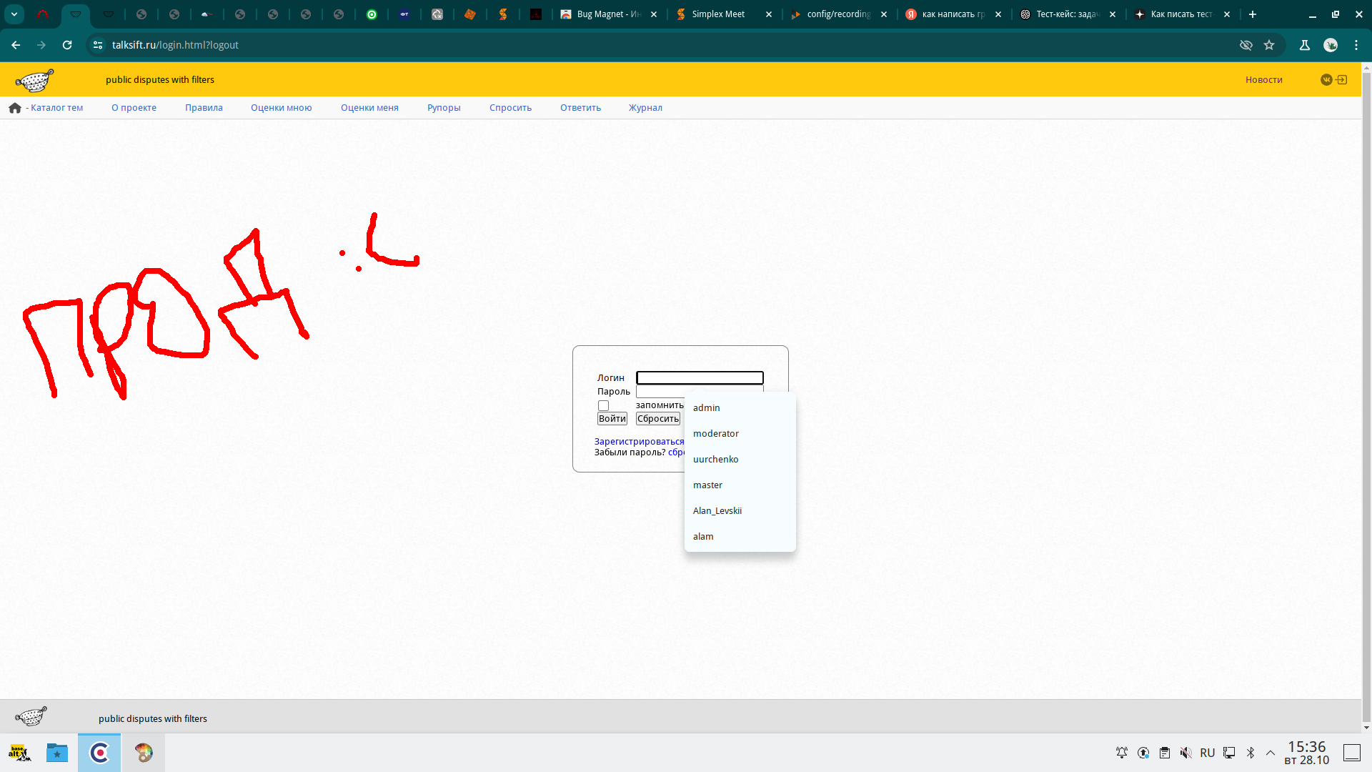 При авторизации на сайте https://talksift.ru/login.html и при введении данных пользователя, например Фамилия Имя (Логин - admin Пароль - admin), есть модальное окно "запомнить меня", где при нажатии на нее у нас сохранятся данные (Логин/Пароль) пользователя и при дальнейшем использовании сайта, во время авторизации нам не нужно будет снова заполнять поля ввода Логина/Пароля, сейчас это не работает