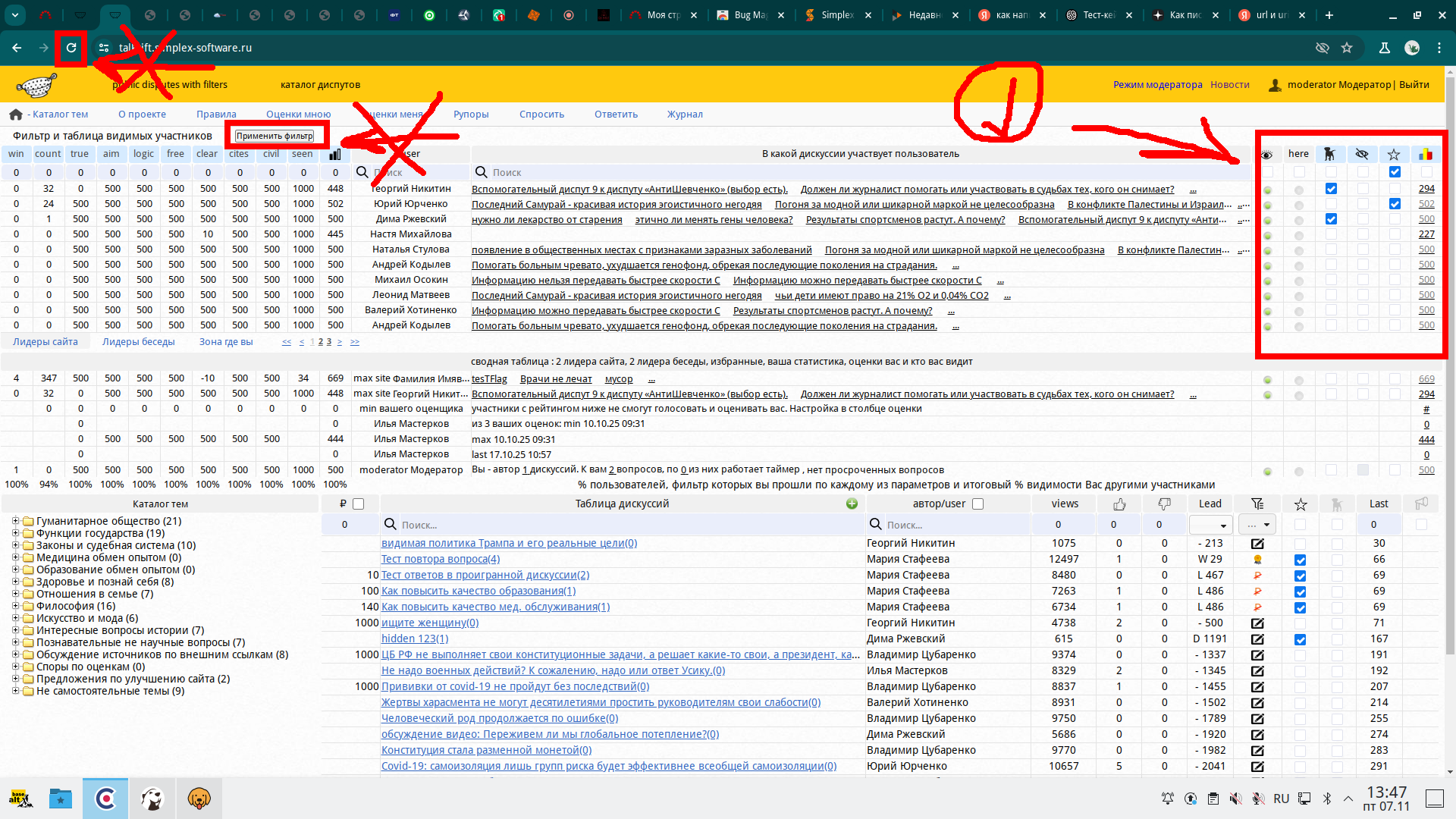 В крайней правой таблице (Таблица фильтр-колонок) при скрытие/добавление в избранное/отслеживать активность пользователя, сайт обновляет эту информацию после перезагрузки сайта или после нажатия "Применить фильтр".