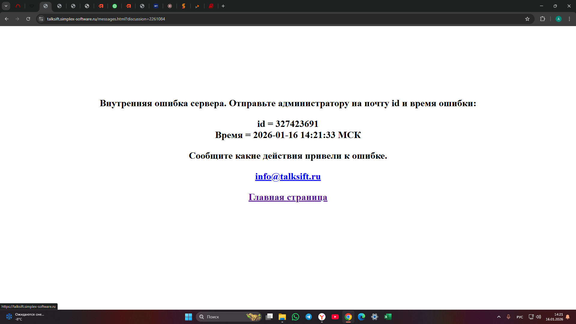 На тестовом сайте https://talksift.simplex-software.ru при выборе дискуссии возникает "Внутренняя ошибка сервера".