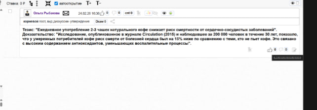 1.Найти дискуссию с типом "Предположение", запомнить рейтинг автора и поставить лайк (палец вверх) на Корневой пост.